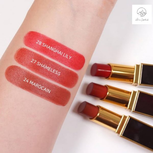 Một dòng son cao cấp sẽ được thể hiện ngay thôn qua chất son. Mô tả về dòng son Tom Ford Lip Color Satin Matte này, Tom Ford đưa đến một loạt những cụm từ như lì nhung, mịn màng, sống động, màu lên chuẩn nét chỉ sau một đường thoa. Công thức mới còn giúp cho son Tom Ford Shanghai Lily này siêu tự nhiên, mỏng nhẹ, độ che phủ cao. Là finish bóng mọng mà vẫn sở hữu khả năng lưu màu lên đến 6 giờ đồng hồ liền. Bao nhiêu tuyệt vời gói trọn hết trong thỏi son bán lì trong mơ tên son TF 28 này cả!